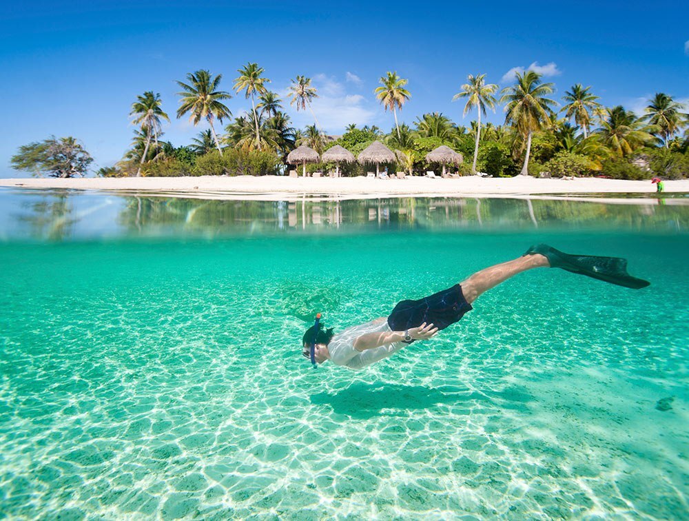 Знакомство с побережьем и его 10 километровым пляжем (можно делать по утрам пробежки), знакомство с самим островом его инфраструктурой и всеми возможностями, знакомство с правилами безопасности, первые купание, первый сноркелинг, первый обед и первые фрукты.